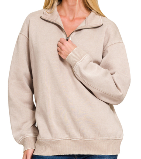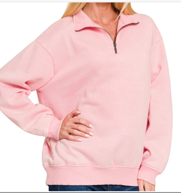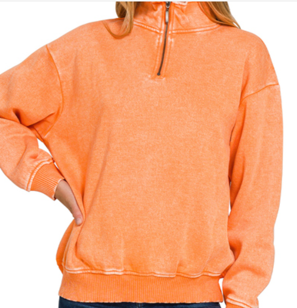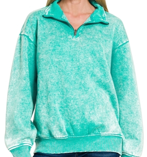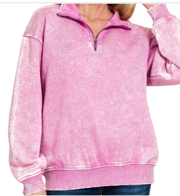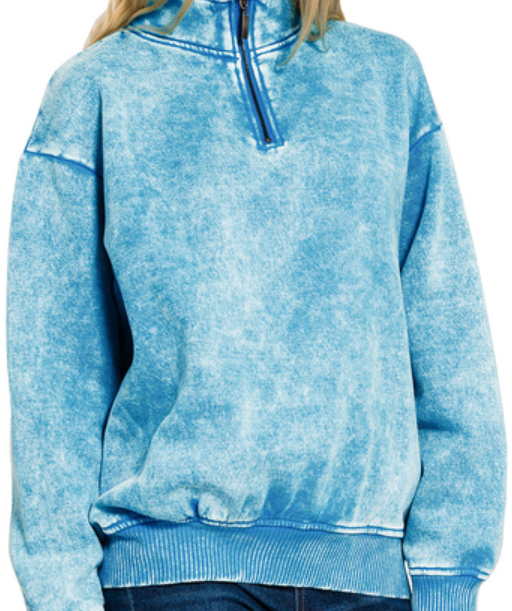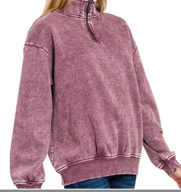 Acid wash fleece half zip pullover