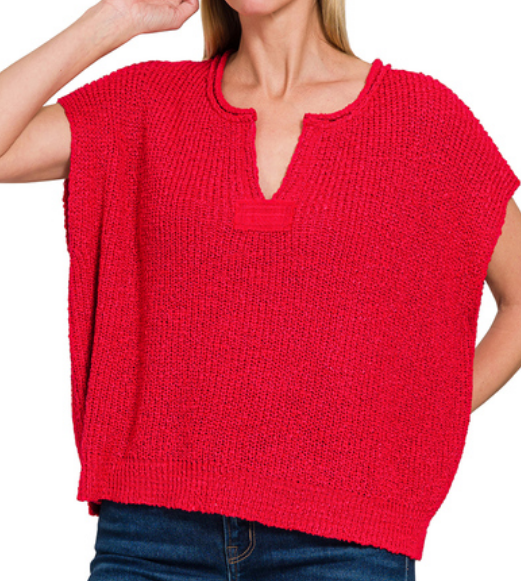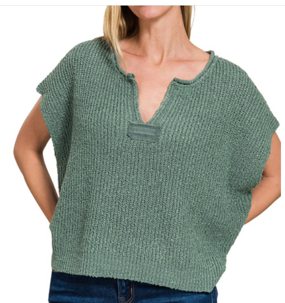 BACK PATCH ROLLED SPLIT-NECK SIDE SLIT PULLOVER