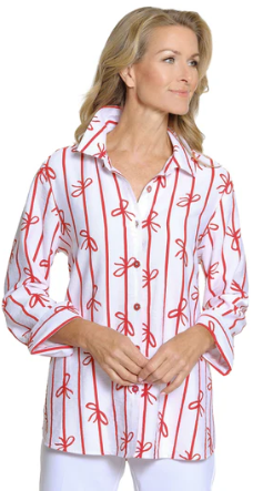 Elevate your wardrobe with the Bow Print Woven Shirt, designed to combine comfort and style effortlessly. Its lightweight woven fabric ensures breathability, while the charming bow print adds a playful yet sophisticated touch. Perfect for both casual outings and office wear, this shirt brings a fresh, fashionable edge to any outfit. Experience a flattering fit that moves with you, making it an essential piece for versatile, everyday elegance.