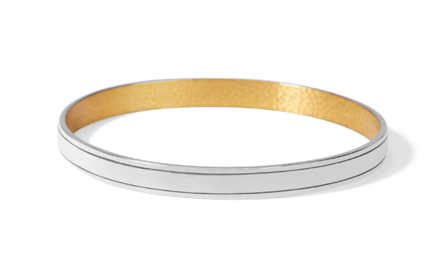 Wear this slim bangle solo or stack with other bangles and bracelets for a stunning dual-tone look.