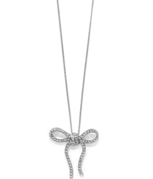 The Illumina Bow necklace is flowy and delicate with a bit of whimsy. It truly has the characteristics of a real ribbon delicately knotted. Glistening with pave stones throughout, it looks like fine jewelry and appears to have movement, like a real ribbon.