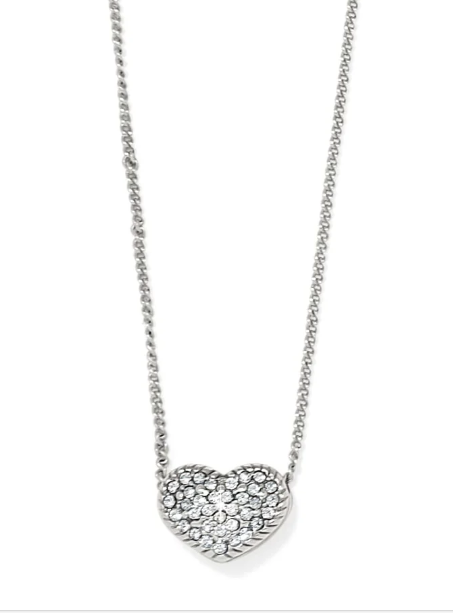 A delicate approach to accessorizing. This quietly understated encrusted Heart necklace is so precious and effortless that it can be worn every day, on its own or layered with any style of necklace. The reverse side is finished off with a single stone in the center.