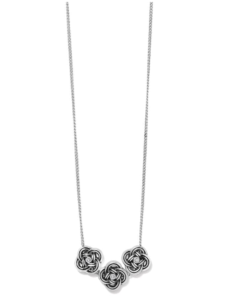 Celtic knots symbolizing eternal love and friendship play out across three petite stations on this pretty pendant necklace.