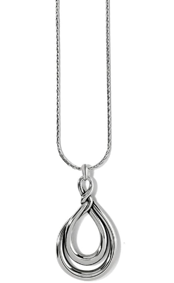 A high-shine silver pendant twists its way into our hearts, inspired by Celtic knots symbolizing eternal love.