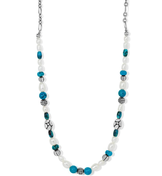 The designer mixed in turquoise magnesite beads and freshwater rice pearls with her Balinese-inspired pebble mosaics for a stunning look. They also look sensational worn with the pebble-and-dot Medali Collection.