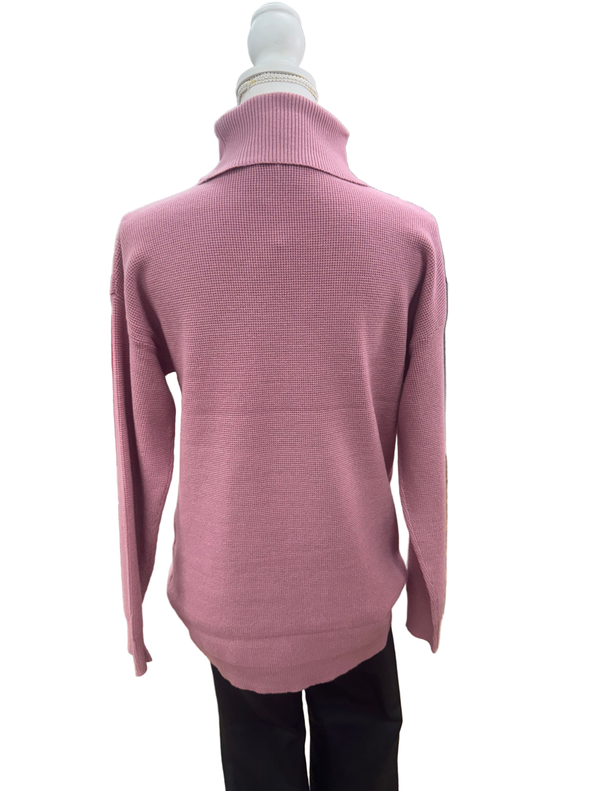 This pink turtleneck sweater offers a soft, feminine touch with cozy, timeless appeal. The gentle pink hue adds warmth and charm, while the classic turtleneck design provides comfort and style, perfect for layering or wearing on its own. Crafted for a flattering fit, it pairs effortlessly with jeans, skirts, or tailored trousers, making it ideal for casual outings or polished everyday ensembles. Its versatile, elegant design ensures it’s a wardrobe staple that brings both comfort and charm.