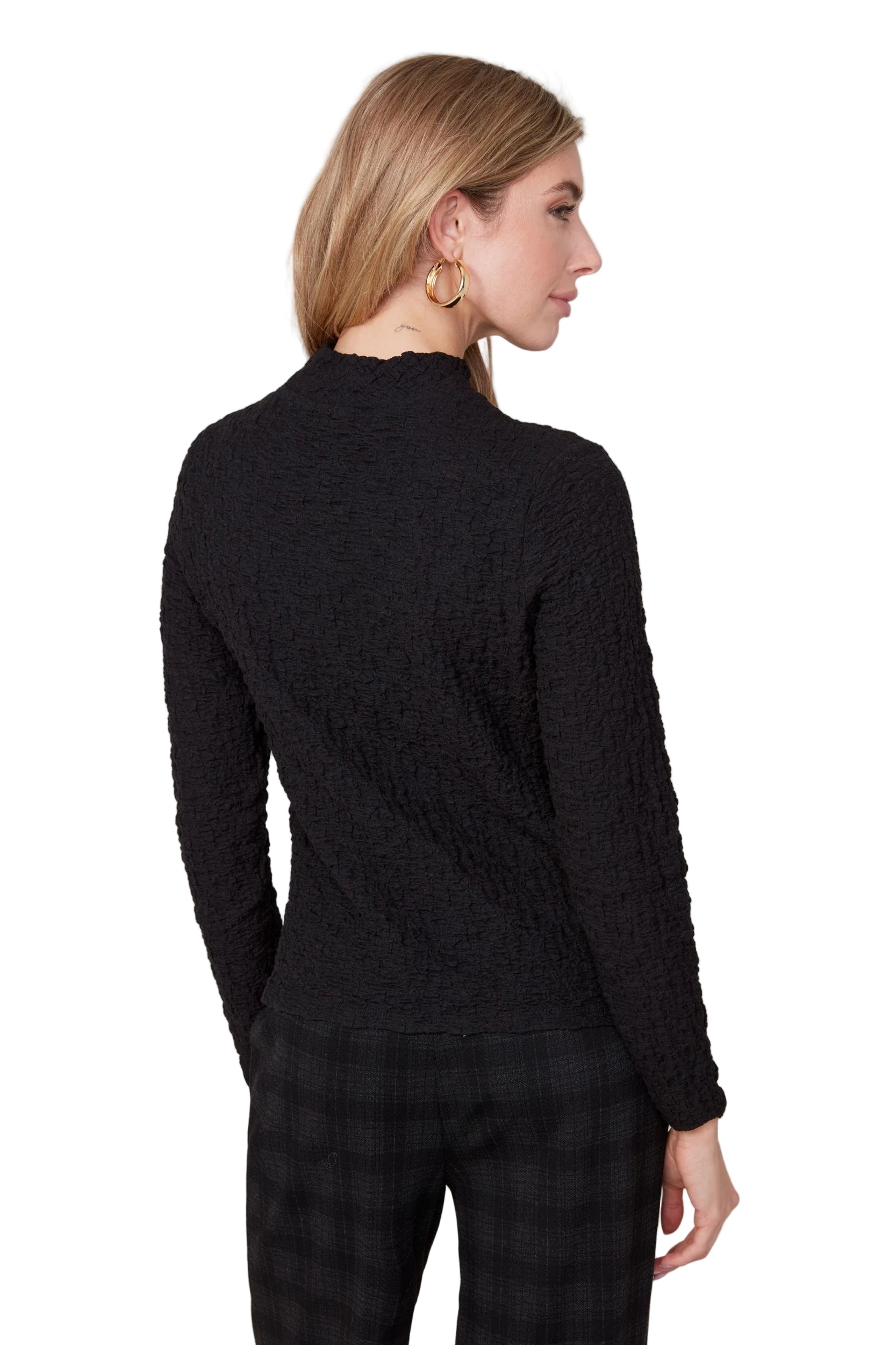 Renuar Crinkle Mock Neck Top - Black
