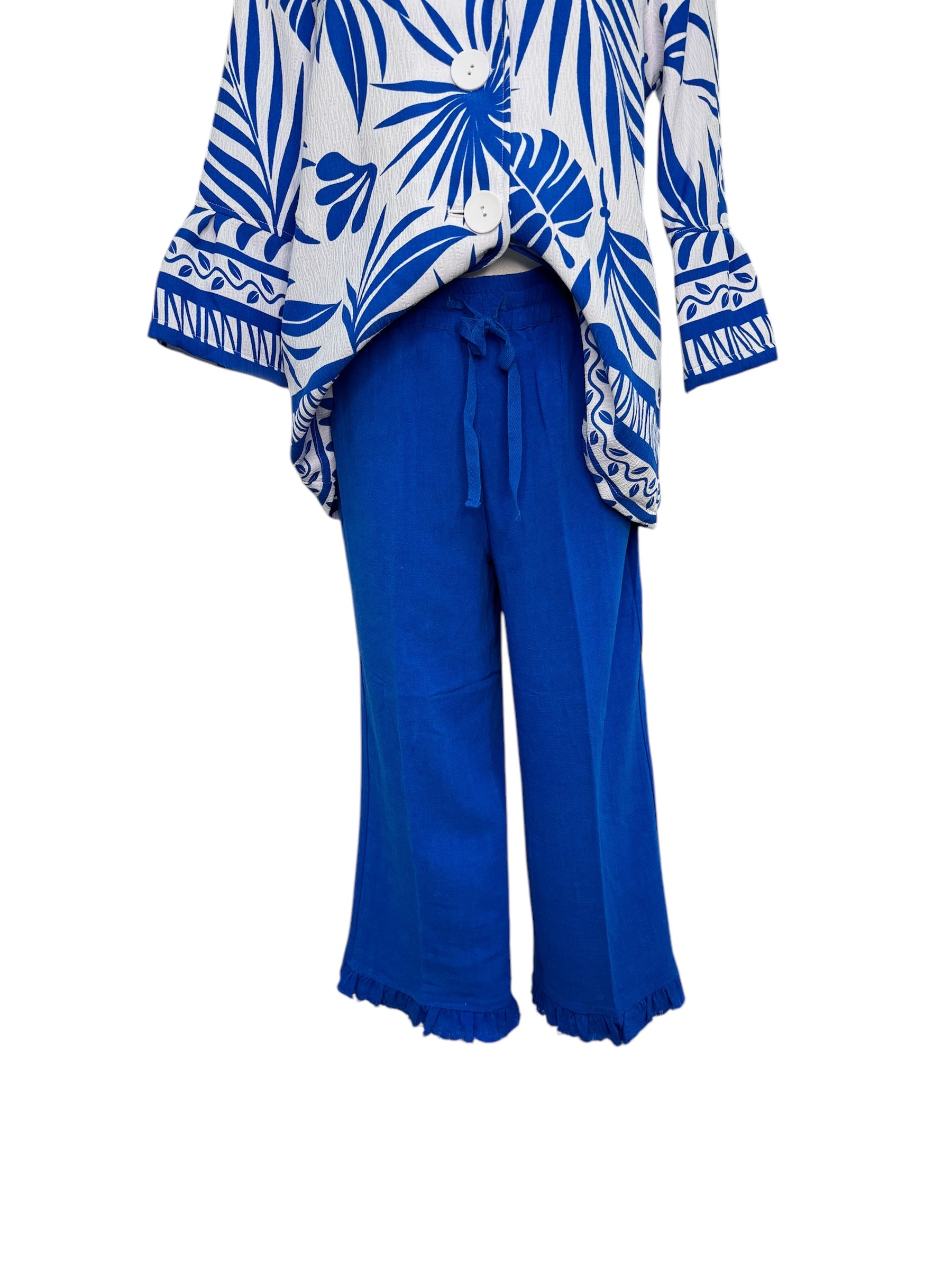 Elevate your casual look with these chic royal blue linen blend pants, designed for comfort and style. The breathable fabric ensures all-day wearability, while the frayed hem adds a touch of laid-back edge to the classic design. With a relaxed fit and vibrant blue shade, these pants are perfect for warm weather and pair effortlessly with both casual tees and dressier tops. Whether you're lounging or out for a stroll, these pants offer the perfect blend of comfort, style, and modern flair.