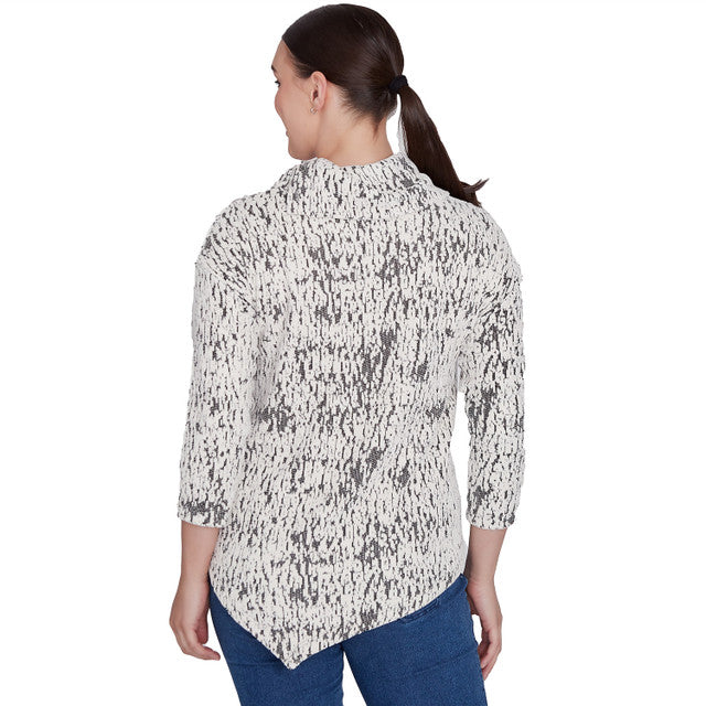 Ruby Rd. Women's Split Cowl Chenille Jacquard Knit Top - White/Blk