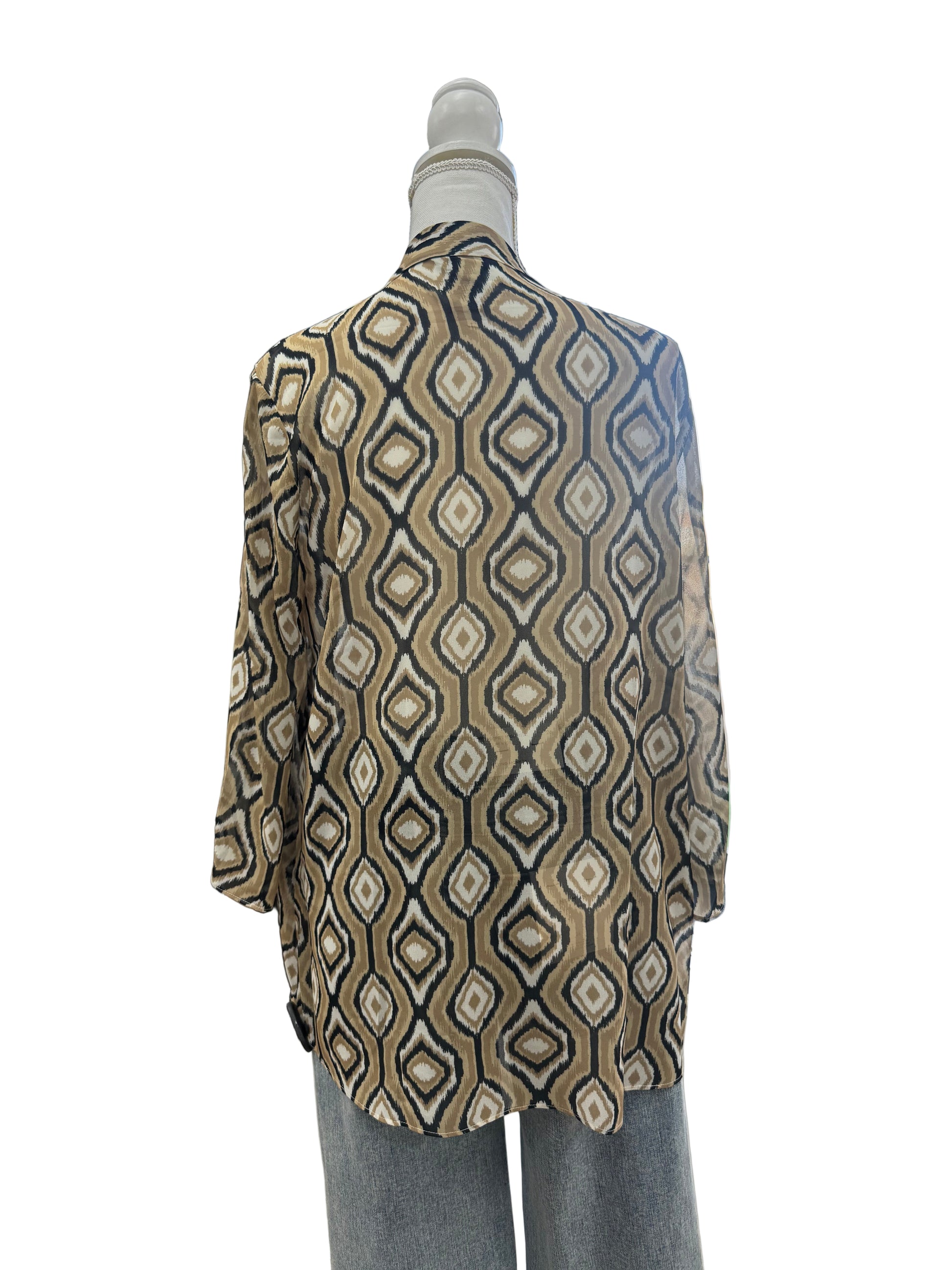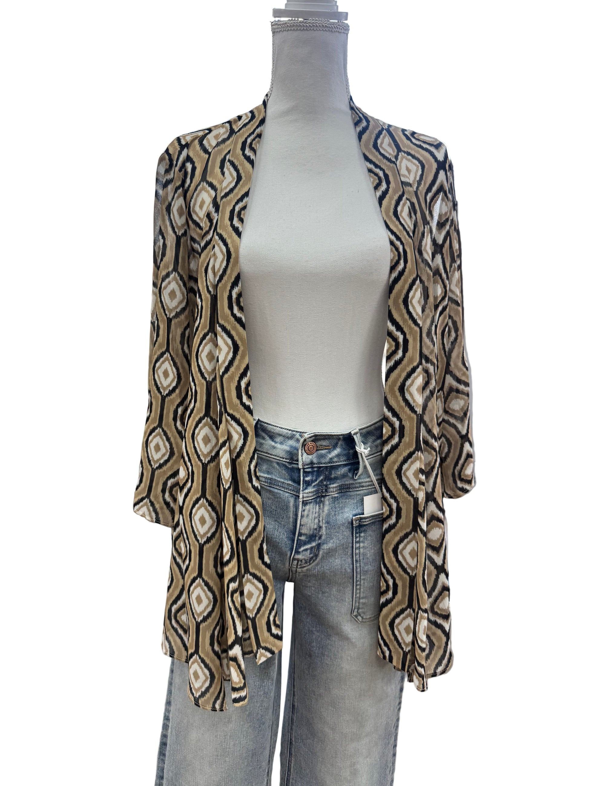 Add a touch of global-inspired flair to your layering pieces with the Multiples Tan Ikat Pattern Cardigan. Featuring a soft tan base with a striking Ikat print, this lightweight cardigan blends earthy tones and bold pattern for an effortlessly chic look. The open-front design and relaxed fit make it perfect for layering over tanks, tees, or blouses, whether you're dressing up for the office or keeping it casual on the weekend.