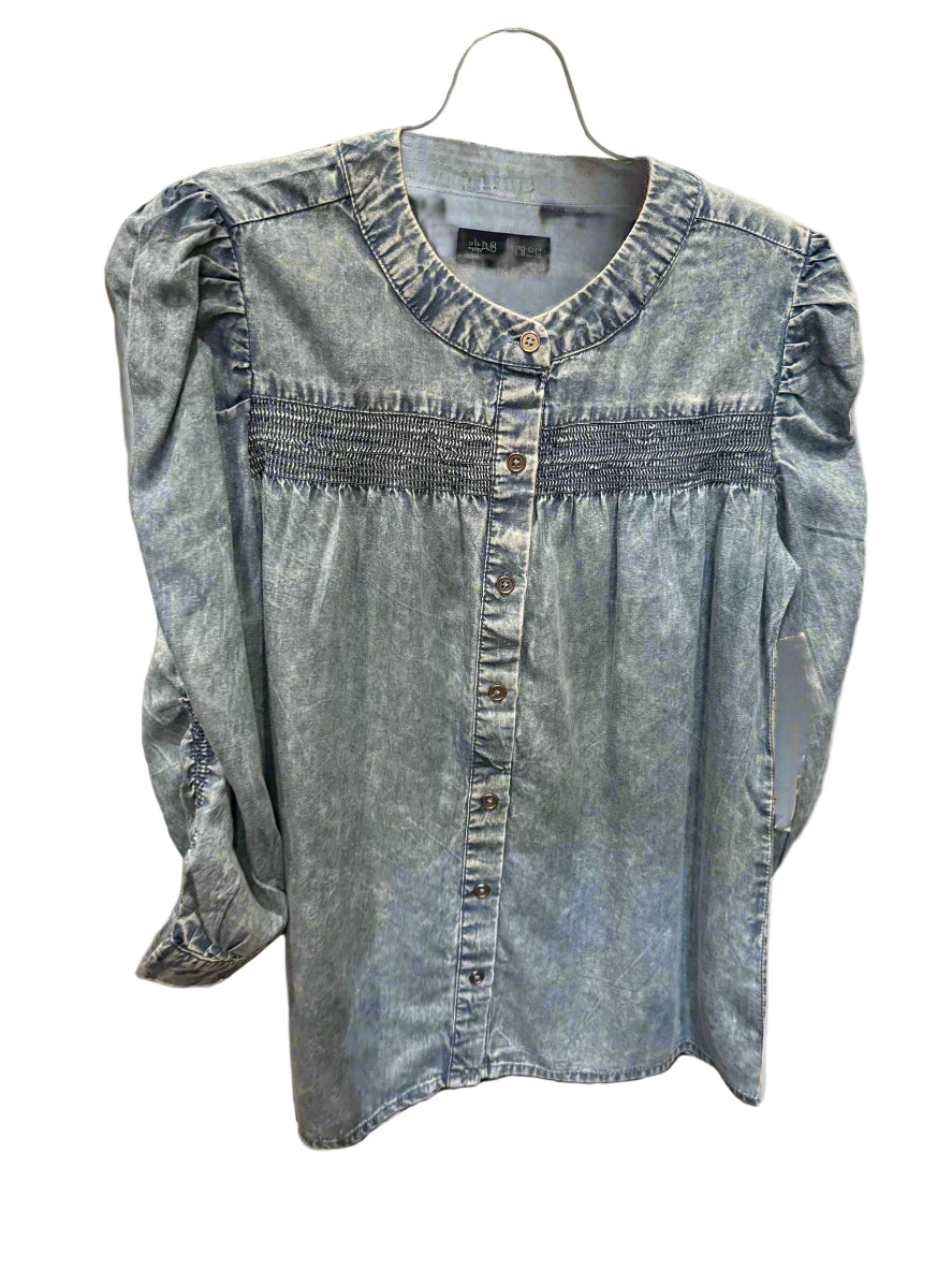 A fresh take on a timeless classic, this Tru Luxe denim top brings effortless style with a modern twist. Crafted from soft, breathable denim, it features a flattering button-up front and 3/4 sleeves that offer just the right amount of coverage. Thoughtful details like subtle stitching, a relaxed silhouette, and roll-tab sleeves add versatility and charm. Whether worn open over a tank or buttoned up with your favorite pants, this piece is a go-to for laid-back yet polished style.