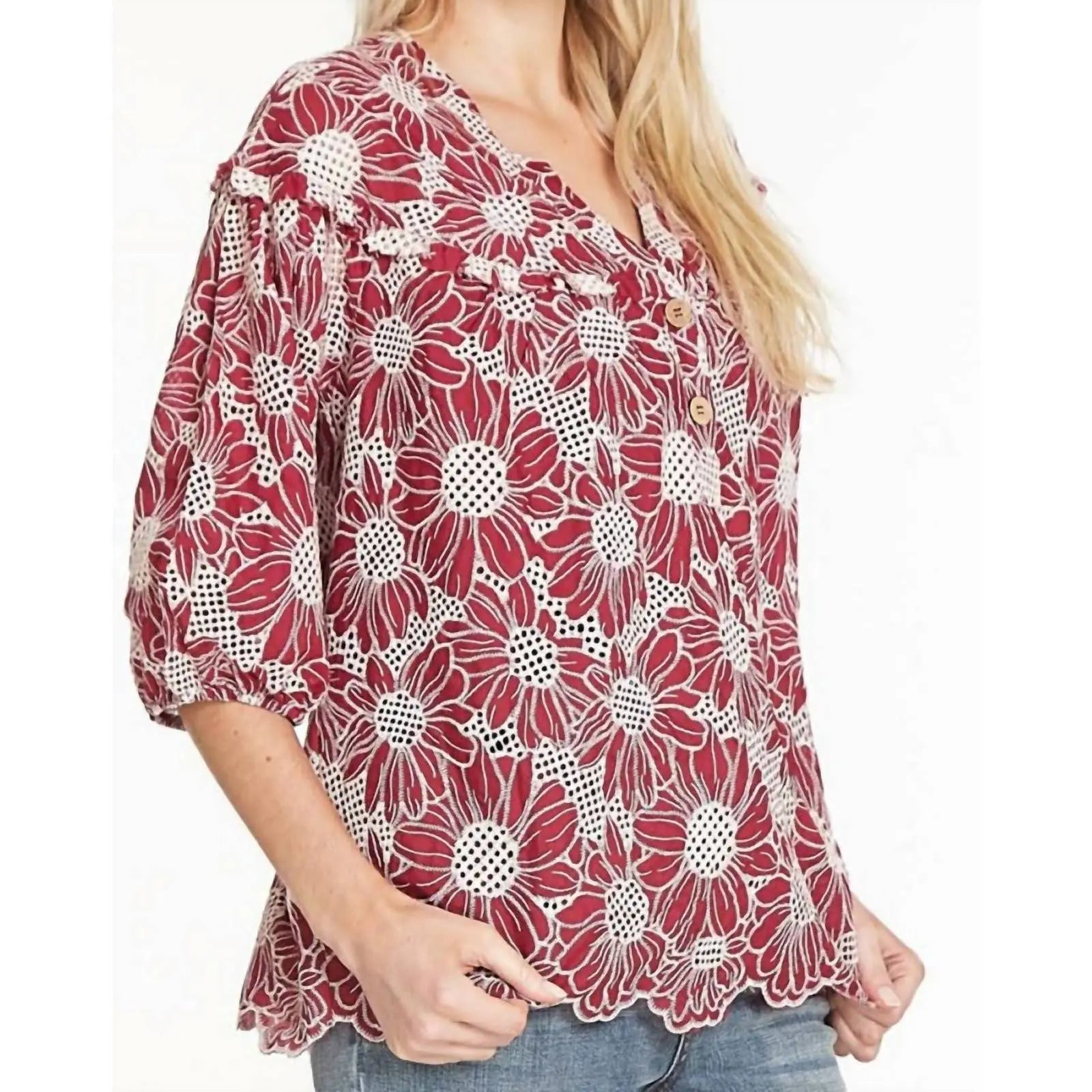 Tru Luxe Floral Embroidered Blouse - Garnet